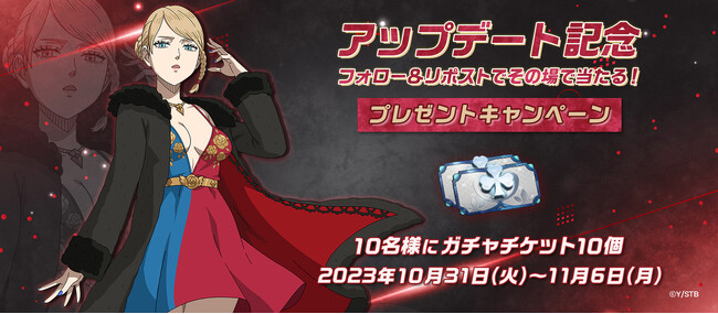 株式会社VIC GAME STUDIOS JAPAN(東京都新宿区、代表取締役:李 同校)は、テレビアニメ『ブラッククローバー』のアプリゲーム『ブラッククローバーモバイル 魔法帝への道 The Opening of Fate』(以下、ブラクロモ)において、本日10月31日(火)にアップデートを実施し、シーズン6がスタートしたことをお知らせいたします。