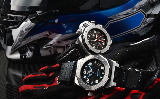 バイクライフをより楽しく豊かにする事をコンセプトに、徹底的なライダー目線からこれまでの腕時計の設計常識を見直し、ハンドル操作を妨げない逆位置リューズや耐震ムーブメントを搭載するなど、高い実用性と、メカニカルで素材感あふれるスポーティーなデザインを両立。