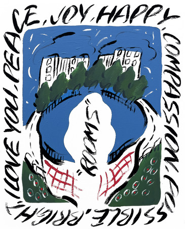 アクリル画の作品を中心に、看板や宣伝美術、ウィンドウに用いられる絵や文字を描いている。