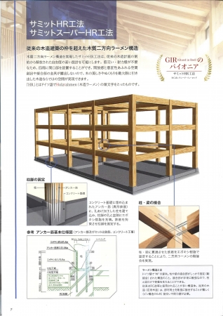 木質二方向ラーメン構造を実現したサミット工法は、従来の木造計画の制約から解放された自由度の高い設計を可能にします。筋交い・耐力壁が不要なため、四周に開口部を設置することができ開放感と意匠性あふれる空間創出や接合部の金具が露出しないため、木の美しさやぬくもりを最大限に引き出した木造ならではの空間が実現できます。