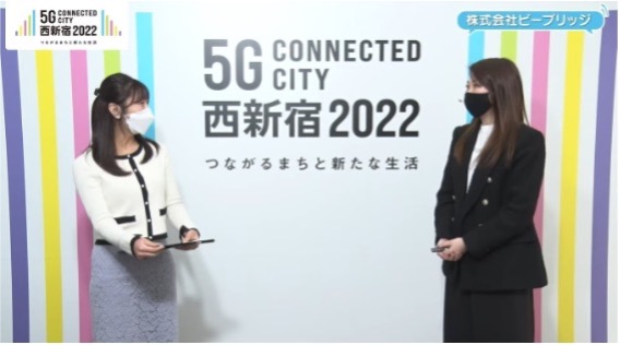 株式会社ビーブリッジ(本社:東京都千代田区、代表取締役:野崎 良博)は、東京都デジタルサービス局が推進する「5Gを含む先端技術を活用した西新宿エリアにおけるスマートシティサービス実証事業」の採択に伴い、令和4年1月22、23日にオンラインにて開催された「5G Connected City 西新宿 2022 つながるまちと新たな生活」に出展いたしました。