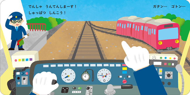 赤ちゃんを抱っこして、いっしょに電車を運転して遊べる絵本『でんしゃ うんてんしまーす!』。おひざの上で出発進行! 赤ちゃんも大人も、大はしゃぎ。笑顔の時間をお届けします。