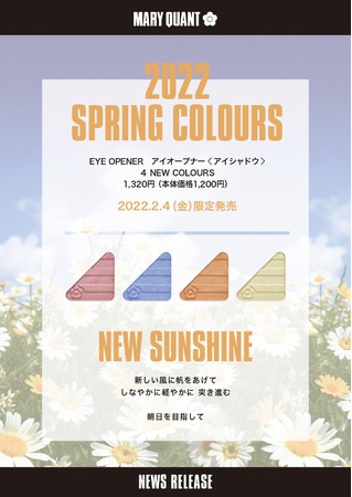 株式会社 マリークヮント コスメチックス(本社:東京都渋谷区、代表取締役:陶 正治)は、2022年2月4日(金)、『アイオープナー “2022 SPRING COLOURS”』の販売を開始いたします。