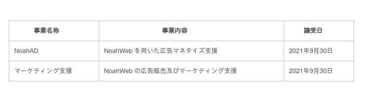 当社はかねてよりセガが所有する NoahAD および関連するマーケティングソリューション全体の事業運営を支援してきましたが、2021年9月30日にセガからの事業譲渡を受け、当社のマーケティングソリューション事業として事業展開することになりました。