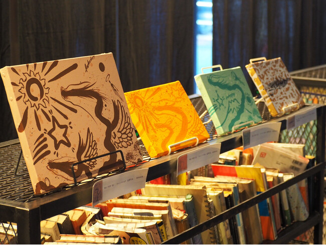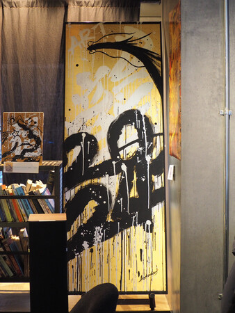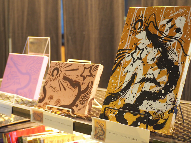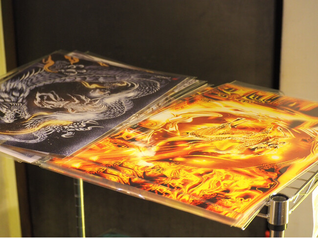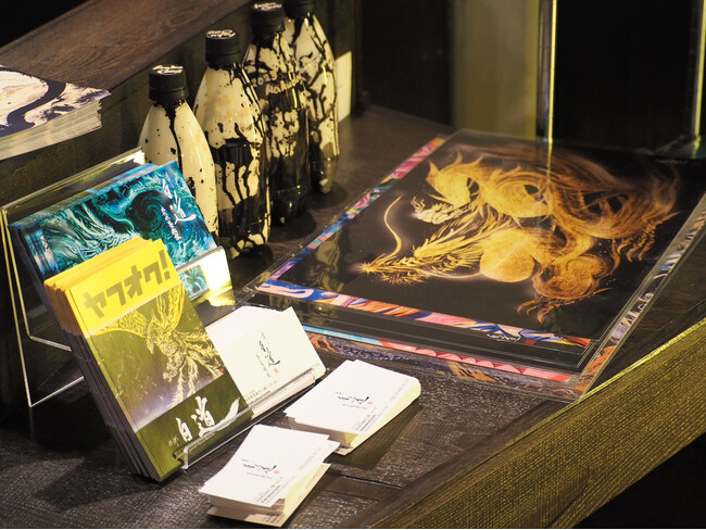店内にはA1サイズやA3サイズのポスター・白道氏自身のオリジナル作品『BET BOTTLE』などの白道オリジナルグッズの販売。