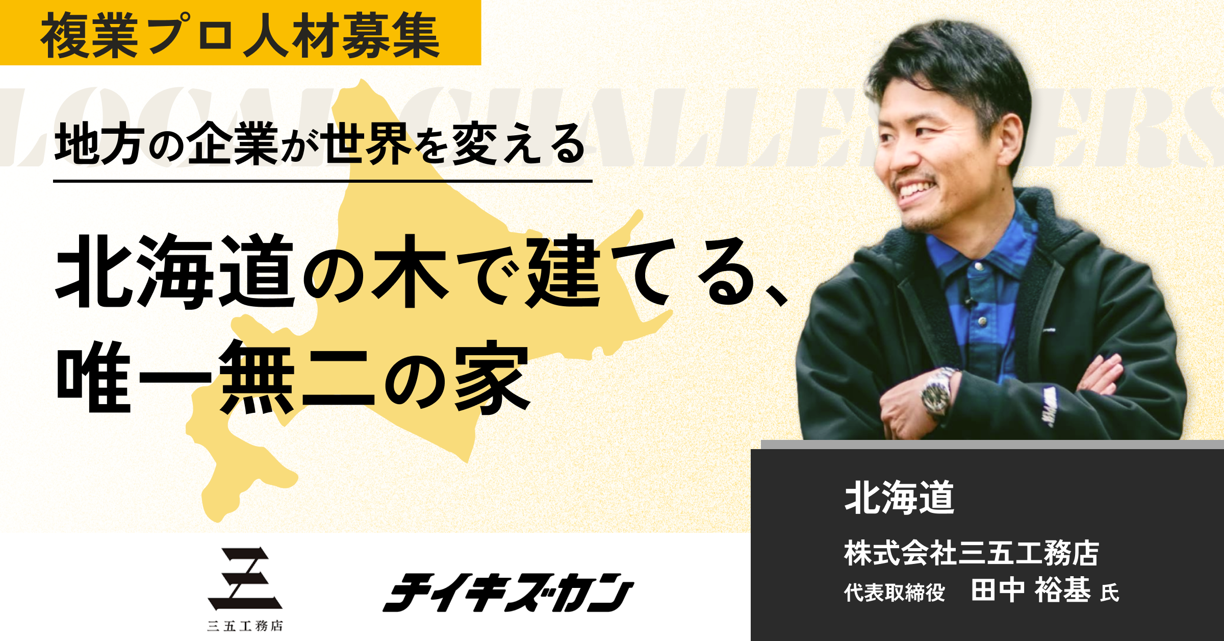 株式会社XLOCAL(本社:山形県鶴岡市、代表取締役:坂本大典)が運営する、地方特化型複業プロ人材マッチングサービス「チイキズカン」にて、北海道札幌市の株式会社三五工務店(代表取締役:田中 裕基)の新プロジェクトがスタートしました。