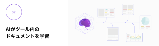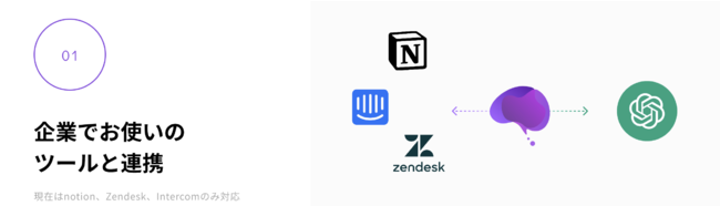 企業が利用している様々なツールと連動し、ツール内のデータやドキュメントを元にAIが学習し、ユーザーの質問に回答してくれる高性能なチャットボットです。
