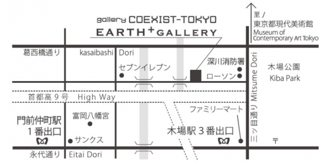 本ギャラリーのある木場・清澄白河エリアは、江戸深川の下町情緒を残しながらも、近年、アートとカフェの街として幅広い世代からの注目を集めています。街全体を水路が巡り、約 72,000 坪の緑豊かな木場公園が南北にのびるこの地区で、アートと共に贅沢でのんびりとしたひと時をお過ごしください。