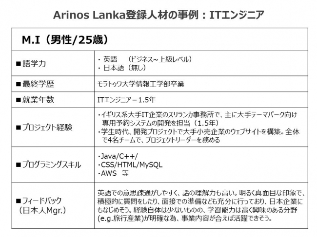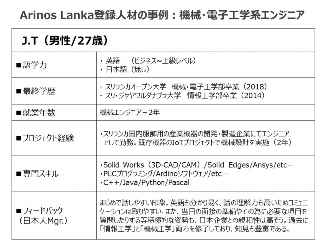 ※実際のスリランカ人材事例:機械・電子工学系エンジニア