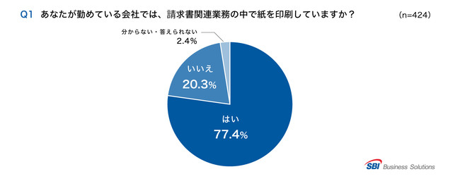 ・「請求書関連業務(請求書の作成、送付、入金確認、督促、仕訳計上など)のいずれかの時点で紙を印刷してアナログな事務処理を行っている」と答えた経理担当者は77.4%