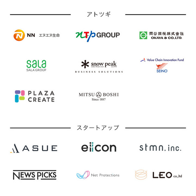 タキビコ共創パートナーは、運営会社の三星毛糸株式会社を含めたアトツギ(老舗企業)8社とスタートアップ6社の計14社です。地域・産業の枠を越えてビジネスでのクロッシングを目指した企業が「タキビコ」に集結しました。