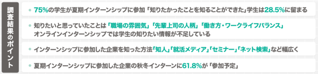 【23卒調査】 夏期インターンシップを通じて「知りたかったことを知ることができた」28.5% オンラインで不足する「職場の情報」提供が課題に