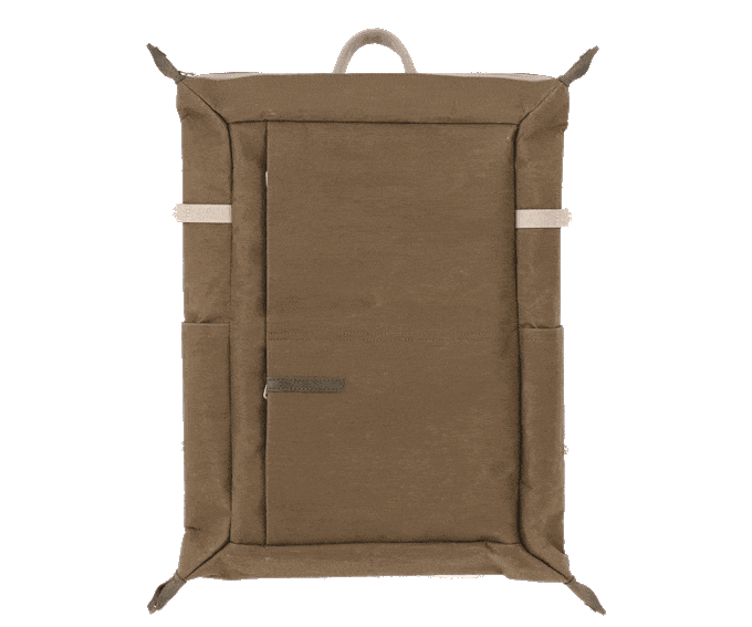 また、四隅のフラップは開閉可能な設計で、容量やシーンに合わせて自由にカスタマイズ可能。収納量や好みに合わせ、デザインに可変性を持たせた点にも使用する人のことを考えたデザイナーのこだわりが詰まっています。