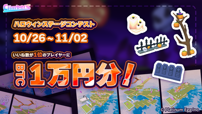 ブロックチェーンゲーム・NFT開発を手掛ける株式会社プラチナエッグ(本社:東京都文京区本郷、代表取締役:竹村也哉)は、2023年10月26日13時より、賞金付きバトルロイヤルレース「クライマーズ(Climbers)」のゲーム内においてハロウィンイベントを開始したことをお知らせいたします。