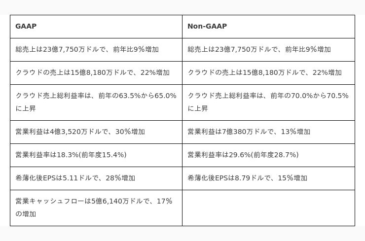 本プレスリリースには、Non-GAAPベースの財務指標が含まれています。Non-GAAP財務指標は、株式報酬、買収無形資産償却、買収関連費用、債務割引償却、債務消滅損失およびNon-GAAP調整による税効果を除外して調整したGAAP財務指標で構成されています。FASB は、2021 年第 4 四半期に会計更新プログラム ASU2021-08「企業結合」を公表しました。ASU2021-08 の改訂は、企業結合における契約資産及び契約負債の認識及び測定について、取得企業に対してトピック 606 を適用することを要求しています。本基準の適用前及び 2020 年 12 月 31 日までの企業結合会計の規定では、被買収企業の売上契約に関する法的履行義務を負債として認識することが求められていました。このような負債に割り当てられる金額は、取得日の公正価値に基づいていました。2021 年1月1日より、当社は新規基準を期首に遡り早期適用しています。当社は、2021 年1月1日以降に取得日が到来するすべての企業結合に新基準を遡及適用しており、そのため 2021 年度中の比較財務諸表は、取得に関連する売上の全額を認識するために適宜調整されています。当社は、これらのNon-GAAP財務指標は、対応するGAAP財務指標と合わせて使用することにより、投資家に当社の事業 の財務業績に関する有用な補足情報を提供するものと考えています。また、Non-GAAP財務指標は、投資家の皆様に当社の継続的な業績に関する指標として有用であると考えています。当社の経営陣は、当社事業を理解・管理・評価し、財務上・戦略上・経営上の意思決定を行うために、定期的にNon-GAAPベースの財務補足指標を社内で使用しています。これらのNon-GAAP財務指標は、経営陣が将来の期間についての計画を立て、予測する際に使用する主要な要因の一つです。当社のNon-GAAP財務指標は、単独で、あるいは同等のGAAP財務指標の代用として考慮されるものではなく、GAAPに準拠して作成された当社の連結財務諸表とのみ併用されるべきものです。これらのNon-GAAP財務指標は、他社が採用しているNon-GAAP財務指標とは大きく異なる場合があります。GAAP ベースと Non-GAAP ベースの業績の調整は、連結損益計算書直後の表で行っています。当社はNon-GAAPベースのガイダンスのみを提供しています。GAAPベースの業績として報告される将来の事象は予測不可能かつ不確実であり、将来起こりうる企業買収の影響など、GAAPとNon-GAAPベースの財務指標間の調整が必要となるため、GAAPからNon-GAAPへのガイダンスの調整はできません。従って、将来の期間について、Non-GAAPベースの財務指標に基づくガイダンスを対応する GAAPベースの財務指標に調整することは、不合理な努力なしに は不可能であることをお知らせします。