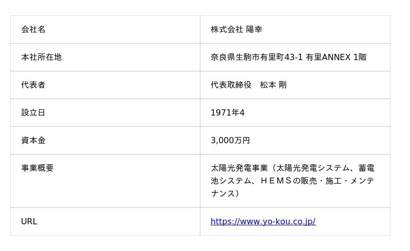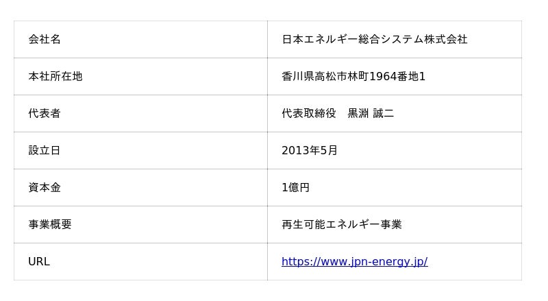 日本エネルギー総合システム株式会社(本社:香川県高松市、代表取締役:黒淵 誠二、 以下「JPN」)は株式会社陽幸(本社:奈良県生駒市、代表取締役:松本 剛、以下 「陽幸」)と系統用蓄電池設置工事請負契約を締結したことをお知らせいたします。