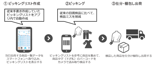 その一方で、オートメーション設備等の導入により効率化が進む倉庫からの出荷とは異なり、店頭からの出荷においては、ピッキングリストの手入力作業や商品タグ(下げ札)の目視による検品作業など、人手頼みの非効率なオペレーションが課題となっています。また、店舗スタッフは、必要最小限の人員配置の中で、日常の接客業務等と並行してこのような出荷作業も行う必要があるため、店頭在庫出荷拡大上の制約となっているケースも見受けられます。