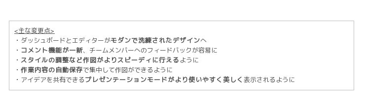 このように、「Cacoo」が当初より大切にしている「誰でも簡単にきれいな図が描ける」という特徴をさらに推し進めつつ、作図だけではなくコミュニケーションの面でも大幅な機能強化が図られてます。