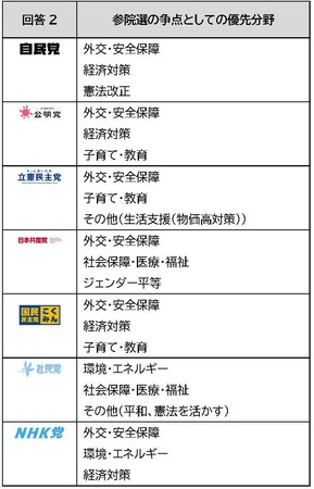 質問2【参院選での優先分野(選択肢より3つ選択)】