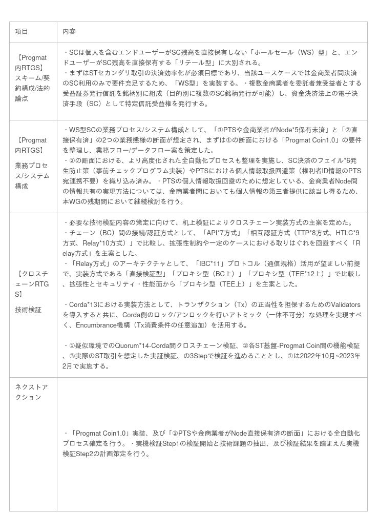 「資金決済WG」における中間報告書の公表と「Progmat Coin」のクロスチェーン技術検証開始について