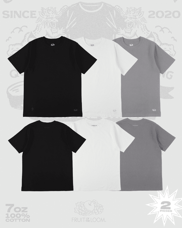 アメリカの老舗ボディメーカー「FRUIT OF THE LOOM (フルーツオブザルーム)」とのコラボレーションにより製作された2枚組パックTシャツ。