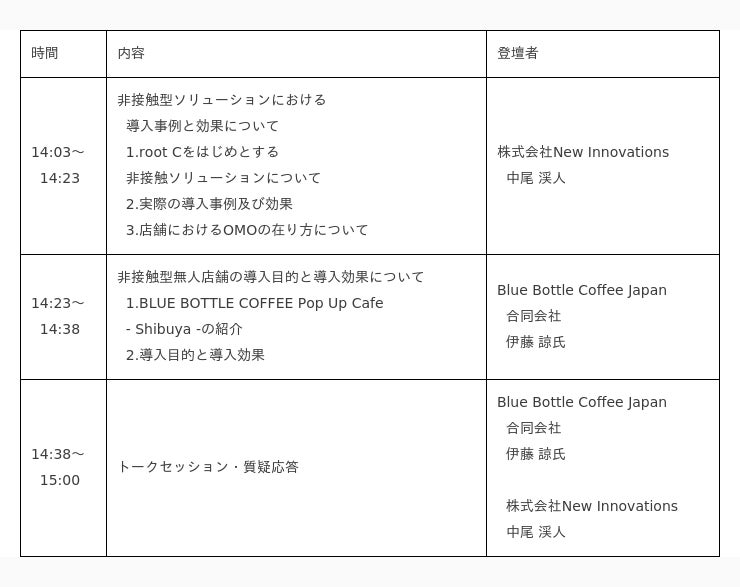 タイトル:Blue Bottle Coffee Japan代表とNew Innovations CEOが語る、非接触型無人店舗の活用方法と顧客への提供価値について