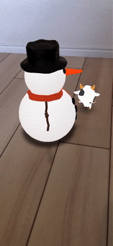 可愛い牛のキャラクターが季節を感じる雪だるまの3Dオブジェクトを眺めたり、階段を昇り降りしながら、散歩をしているARコンテンツです。Tamaenの看板メニューである階段型のお皿をモチーフにコンテンツを制作いたしました。