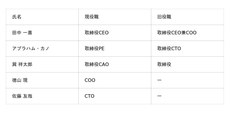 今回の体制変更では、CxOへの登用を通じて、各人の権限と責任範囲をより明確にし、社会実装フェーズにおける事業推進体制の強化を図ります。