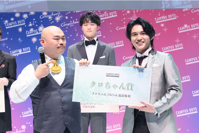 「CAMPUS BOYS 2023」のグランドフィナーレでは、MCの岡副麻希さんに加え、ゲストプレゼンターとして昨年に引き続き3回目の抜擢となるクロちゃん(安田大サーカス)が登場しました。