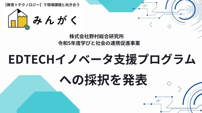 株式会社みんがくが、経済産業省が実施する「令和5年度学びと社会の連携促進事業」の一環として、「EdTechイノベーター支援プログラム」に採択されたことを発表
