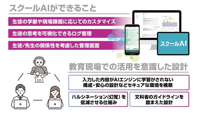 文部科学省のガイドラインに完全対応しているため、教育現場での安心感も高まります。スクールAIは、今後の教育の質向上を大きくサポートする革命的なサービスとして注目されています。