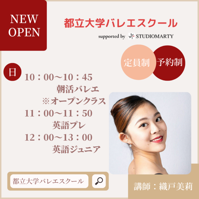 バレエ・ダンス教室のスタジオマーティ株式会社が運営する新スタジオ「都立大学バレエスクール」