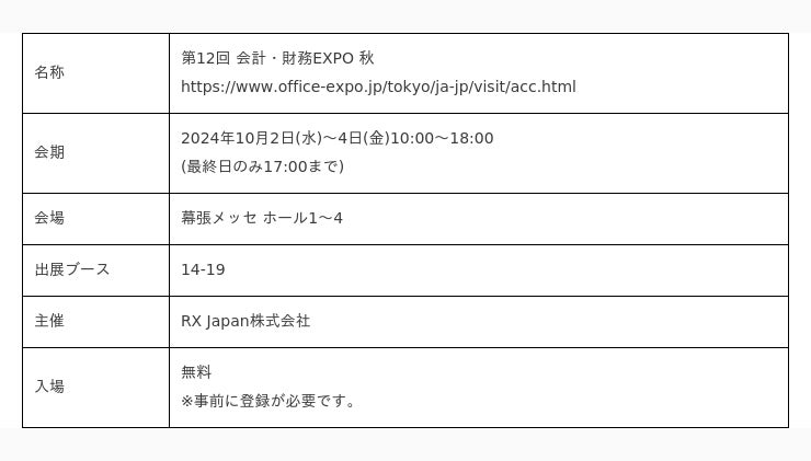 経費精算システムのパイオニアであるイージーソフト株式会社(本社:神奈川県相模原市、代表取締役:山本覇利努、以下イージーソフト)は、2024年10月2日(水)〜4日(金)に幕張メッセで開催される「第12回 会計・財務EXPO 秋」に経費精算システム「ハーモス経費」、勤怠管理システム「ハーモス勤怠」を出展します。