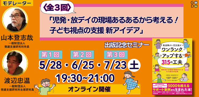 合同出版では『発達障がい児支援がワンランクアップする315の工夫』出版記念セミナーを2022年5月28日(土)・6月25日(土)・7月23日(土)にオンラインで開催いたします。