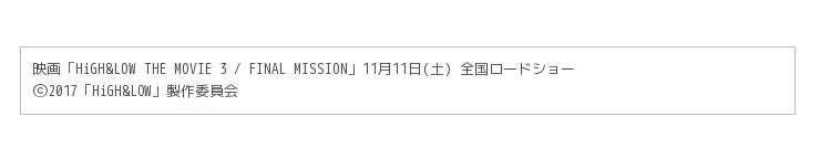 そんな日本中が熱狂した「HiGH&LOW」シリーズも遂に完結!最終章となる映画『HiGH&LOW THE MOVIE 3 / FINAL MISSION』が11月11日(土)に公開します。