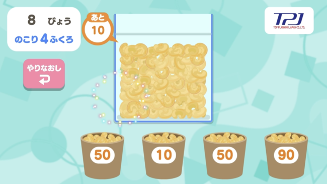 袋の残りが「0」になるようにカシューナッツを移動しよう!