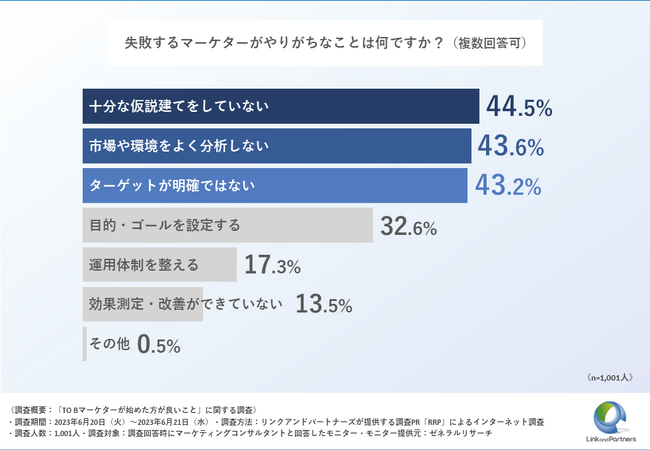 「失敗するマーケターがやりがちなこと」は十分な仮説建てをしていない」が44.5%で最多