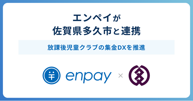 集金業務のキャッシュレス化・DX化を実現するFintech×SaaSプラットフォーム『enpay(エンペイ)』を提供する株式会社エンペイ(本社:東京都港区、代表取締役:森脇 潤一、以下エンペイ)は、2024年4月より佐賀県多久市が運営する放課後児童クラブ3施設にエンペイが導入されたことを発表いたします。九州地方では初の、放課後児童クラブの自治体導入となります。