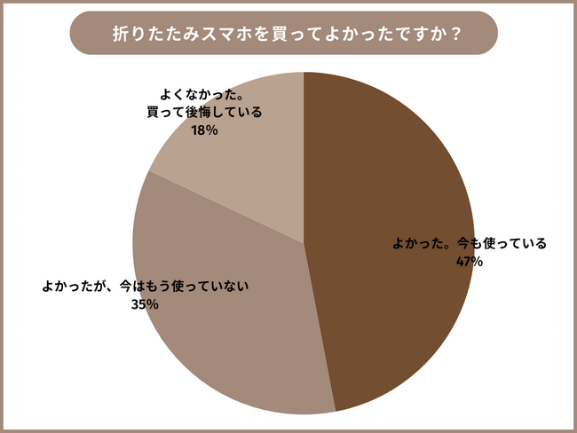 一方で、35%の回答者が「折りたたみスマートフォンを買ってよかったが、今はもう使っていない」と答えています。