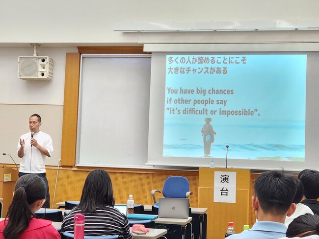 2023年7月23日(日)、当社代表取締役 久保寺が30名を超える様々な国籍(日本/台湾/シンガポール/トルコ/ベトナム/タイ)の学生に向けて記念講演を行いました。