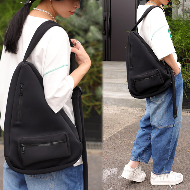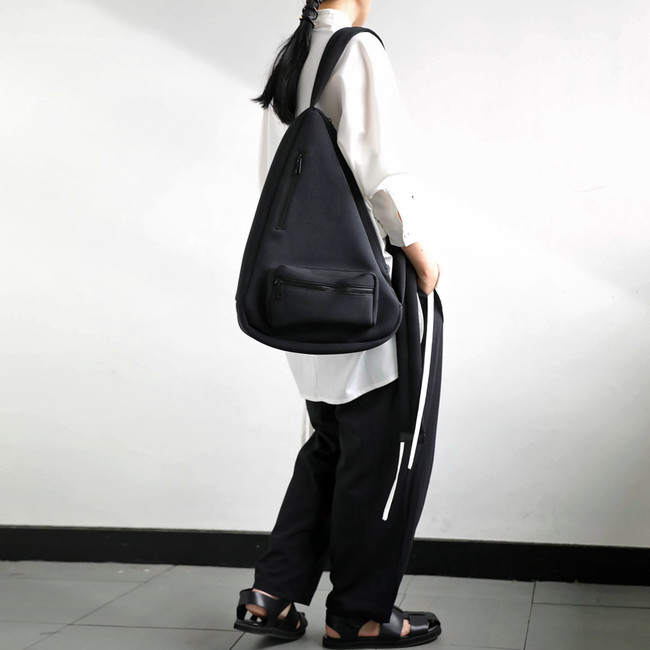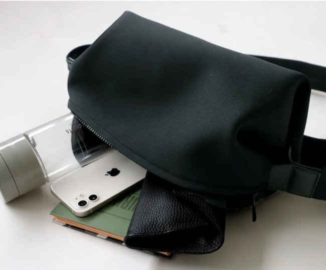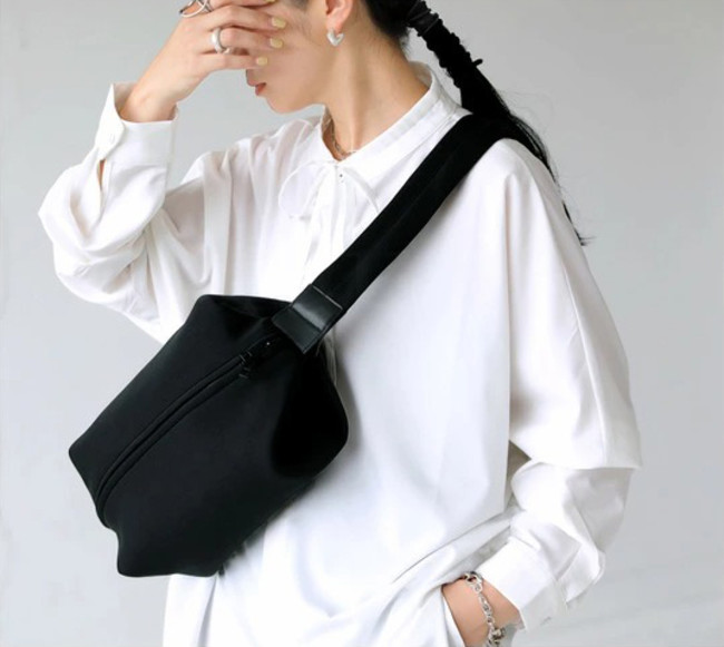 「マシュマロバッグ」は機能性素材としてじわじわと人気が高まっているウェットスーツ素材から生まれた、スポーティーで機能的なバッグ。