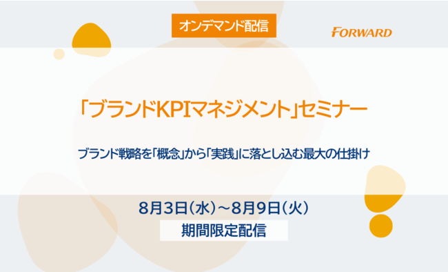 企業のブランド戦略を支援する株式会社フォワード(本社:東京都中央区、代表取締役:伊佐 陽介)は、「ブランドKPIマネジメントセミナー 」のオンデマンド配信を実施致します。2022年8月3日(水)~9日(火)の期間限定配信となっております。
