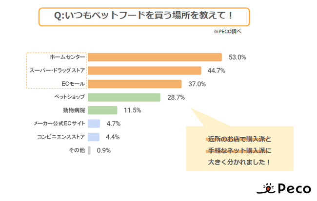 キャットフードを購入する場所はホームセンターが1位。EC派も着実に増加中