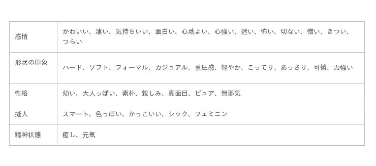 印象語とは、人が文字のデザインに対して感じる抽象的なイメージを単語に表現したものです。
