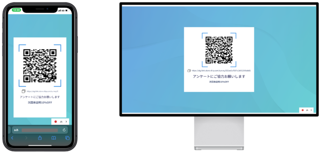 このアンケートのURLとQRコードはワンクリックで発行できます。ご来店後のサンクスメールに添付したり、店内POPにて掲載することが可能です。