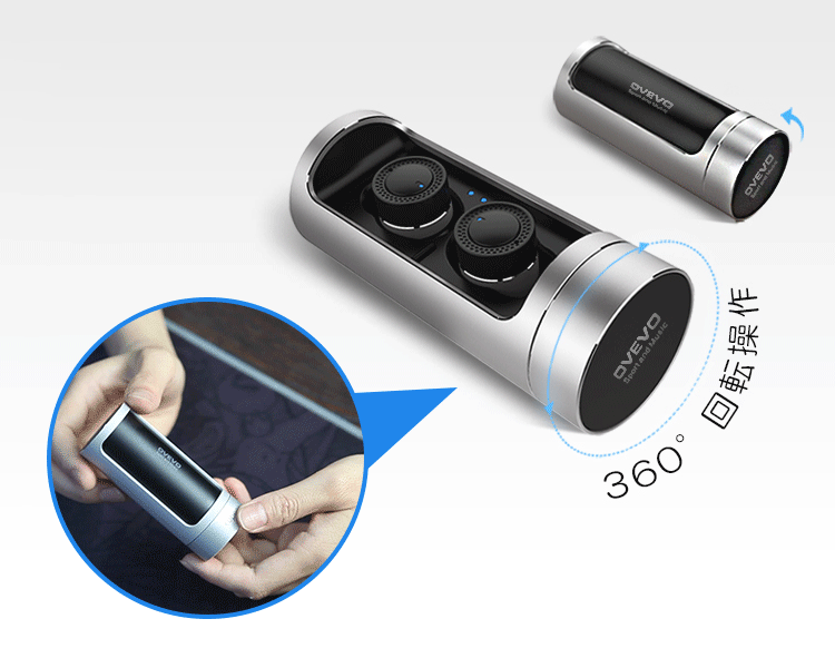 360°回転キャビン状の充電ケース、右でも左でも両方向回転でき、気にせずに開けたり、閉めたりすることができます。収納と充電を一体化されて、コンパクトで持ち運びやすい設計、使わない時にケースの中で充電します。イヤホンを使いたい時に、電源が切れることを心配しなくてもいい、いつでもキャビンの中で満充電の状態でスタンバイしてくれます。