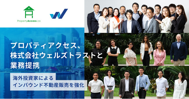 Property Access(プロパティアクセス)株式会社(代表取締役CEO:風戸裕樹、以下「プロパティアクセス」)は、株式会社ウェルズトラスト(本社:東京都港区、代表取締役:平井俊広、以下「ウェルズトラスト」))と業務提携を開始いたしました。本提携により、日本の不動産をお持ちの企業や個人と海外の投資家や富裕層をつなぎ、お客様により安全で円滑なお取引をご提供いたします。