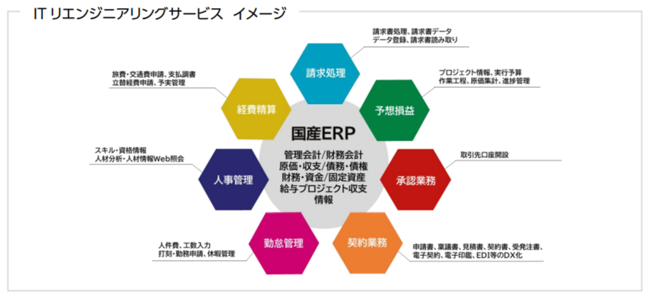 ITリエンジニアリングサービスは、社内システムの運用改善コンサルティングと、基幹システム(ERP)と各種周辺システムとのデータ連携システム構築を行う、当社独自サービスの総称です。