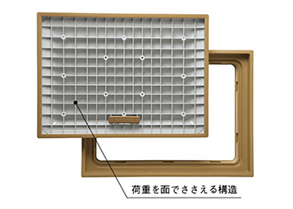 城東テクノの高気密型床下点検口は、荷重を面で支える独自構造で、踏んでも、キシミ、ガタツキが生じません。この構造により、床の強度を保持しながら、正確な体組成計測を実現しました。