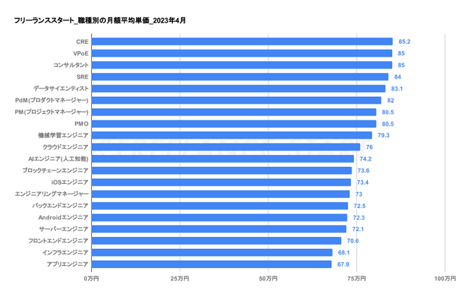 【2023年4月】フリーランス市場月額単価の動向_フリーランスエンジニア専門の案件一括検索サイト「フリーランススタート」